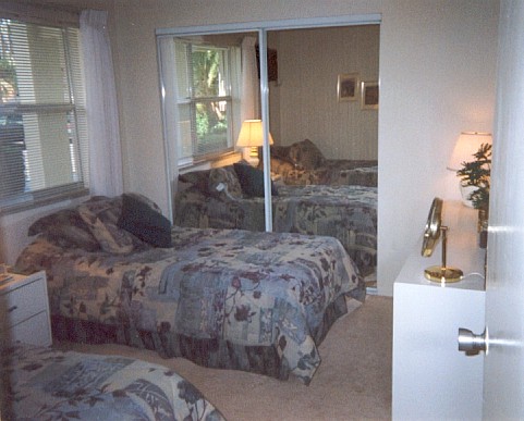 The main living area has its own air-conditioner and a ceiling fan. There is even a cordless phone and an answering machine. Parking is just a few steps from the entrance to the unit. The view out of the enclosed Lanai is gorgeous. You can just enjoy the view or sit at the table and have a meal or play cards. For golfers, there is a "putting green" located directly across from the Lanai and the large swimming pool and club house are just a few steps further. Just outside of the pool enclosure you will find two shuffle board courts.