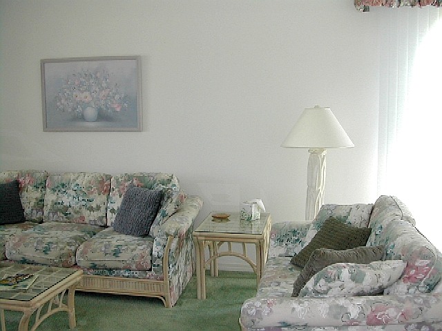 In the main living area you will find a dining room table with seating for four, a large sectional and an entertainment center equipped with a VCR and a 27-inch stereo TV. Other amenities include cordless phones, answering machine, ceiling fans throughout, and lots of storage. It is fully furnished with everything you need from cooking and eating utensils to linens.Twelve Oaks at Lely is a secure "gated community" conveniently located in South Naples near a large shopping center that includes a Publix supermarket, Walgreens drugstore, fast food restaurants, specialty shops, banks, and a K-Mart Super Center. The beautiful white sand beaches of Marco Island and Naples Beach are only 10 minutes away.